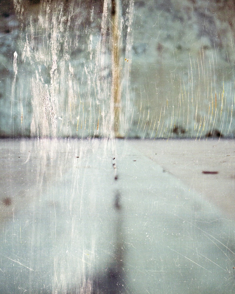 Mit den Kratzungen zieht Lipuš zusätzliche Ebenen in die Fotografie ein, die sich einerseits wie Sperrfeuer vor den Bildraum legen, mit diesem aber auch ein ums andere Mal interagieren. So führt eine dunkle Schramme in elegantem Schwung den Riss im Boden fort, die feinen Kratzer folgen mitunter den Vektoren des Raumes, nur um dann wieder jäh aus der gerade eingeschlagenen Richtung auszubrechen. Was so entsteht ist ein Bildraum, der nichts mehr mit der statischen Zentralperspektive der klassischen Fotografie gemein hat, sondern in dem sich die einzelnen Bild- und Realitätsebenen permanent verschränken.