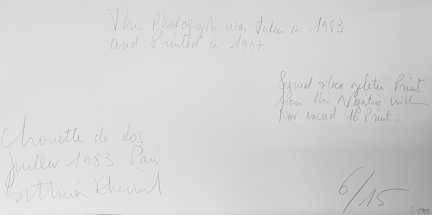 Die für ihre erotischen Aufnahmen von Frauen bekannte Bettina Rheims zeigt in diesem Bild eine Eule von hinten, vermutlich aus der Serie "Animal", die 1994 in der gleichnamigen Publikation veröffentlicht wird. Bettina Rheims fotografiert dazu ausgestopfte Tiere auf großformatigem Polaroidfilm.