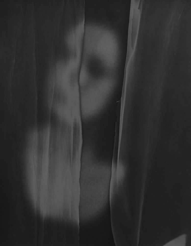 Eine weitere theoretische Deutungsebene eröffnet sich bei näherer Betrachtung der Entstehung des Bildes. Diese kameralose Fotografie entstand in der Dunkelkammer. Auf dem unbelichteten Fotopapier wird der "Vorhang" etwa aus durchsichtiger Folie arrangiert, darauf wird das Bild einer Frau, vermutlich einer Schauspielerin, einer Pantomime, projiziert. Die Frau vor dem Vorhang verhält sich somit andersrum als uns auf den ersten Blick suggeriert wurde.