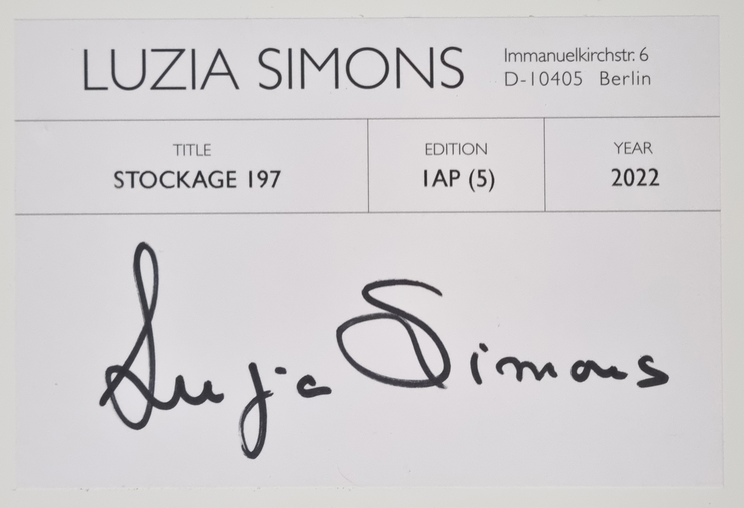 rückseitig auf dem Aufkleber signiert, betitelt, datiert und nummeriert