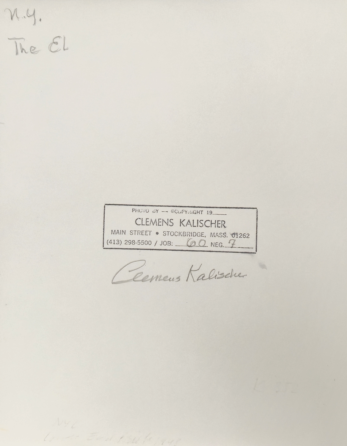 Die Fotografie Under the El wurde vermutlich im Jahr 1948 vom deutsch-amerikanischen Fotografen Clemens Kalischer aufgenommen. Es zeigt eine Szene unter der New Yorker Hochbahn Elevated Railway, im Volksmund kurz the El genannt. Die Aufnahme besticht durch starke Kontraste von Licht und Schatten, durch die räumliche Tiefe der städtischen Architektur und vor allem durch die Menschen, die darin agieren. Sie wirken klein im Verhältnis zu den gewaltigen Strukturen der Stadt, aber dennoch nicht verloren. Gerade in dieser Balance zwischen Anonymität und Individualität, zwischen Bewegung und Beobachtung liegt die Stärke von Kalischers fotografischem Blick.