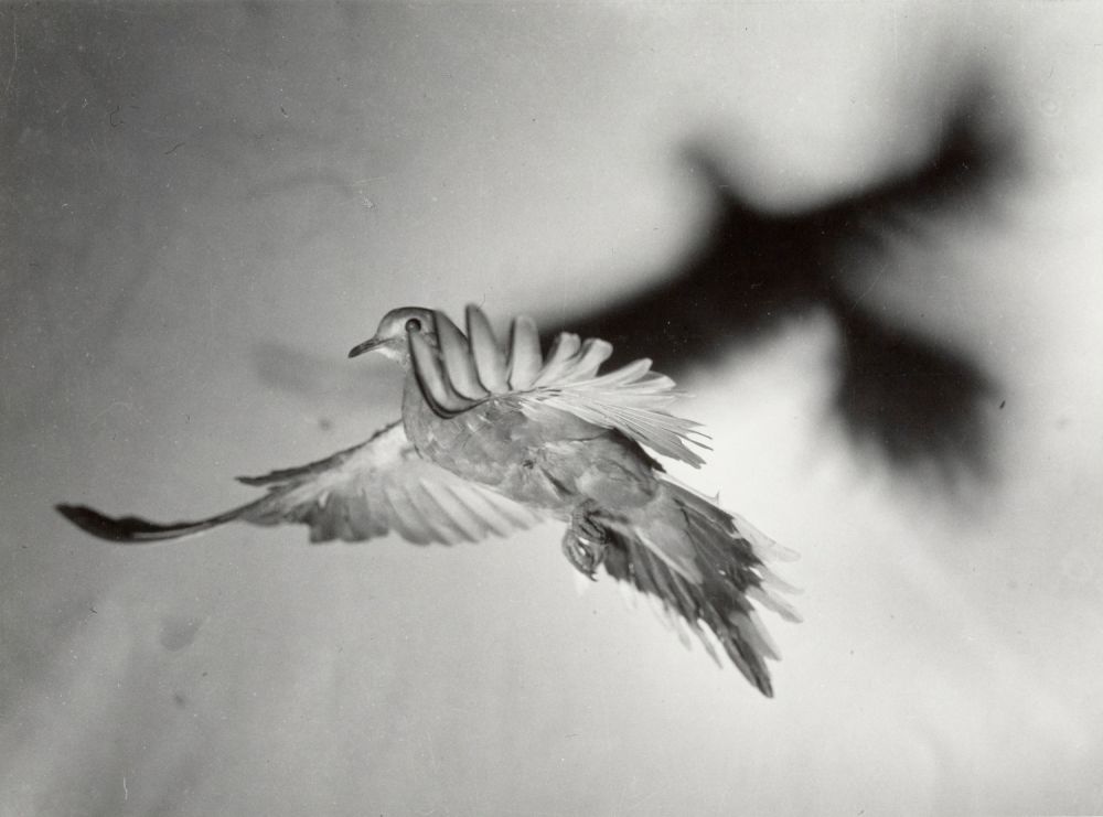 Harold „Doc“ Edgerton gilt als Pionier der Hochgeschwindigkeitsfotografie. Mit der von ihm ab 1931 entwickelten Stroboskoptechnik gelang es, extrem kurze Lichtblitze zu erzeugen und damit Bewegungen einzufrieren, die dem menschlichen Auge verborgen bleiben. Das Bild des fliegenden Vogels demonstriert diese technische Meisterschaft in eindrucksvoller Weise.