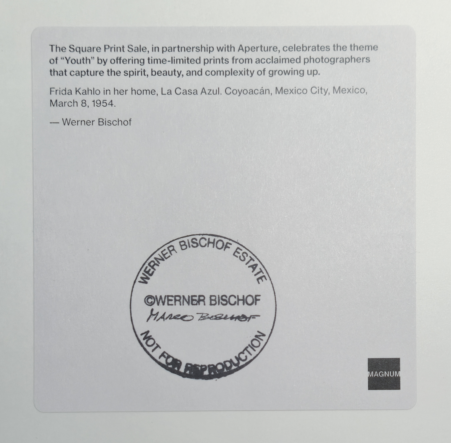 Kahlo kam über die Fotografie zur Malerei, indem sie ihrem Vater assistierte, bevor sie sich während ihrer langen Genesungsphase der Kunst zuwandte. Bischof hingegen hatte gehofft, Maler zu werden, bevor der Krieg ihn zur experimentellen Fotografie drängte. Ihre Welten überschneiden sich, und beide starben jung: Kahlo im Juli 1954, Bischof im Mai desselben Jahres.