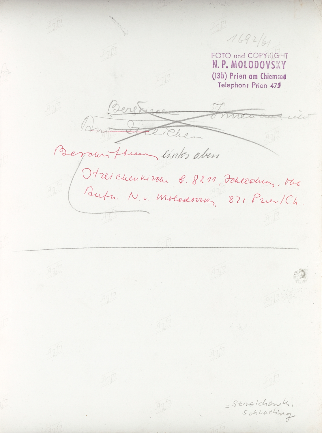 rückseitig betitelt, Künstler-Copyright-Stempel und Archivnummer (1692/61)