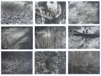 Nach der Entwicklung der analogen SW-Negative fehlte mir Information. Die Bilder hatten sich vom Erlebten entkoppelt. Um meine erlebten Eindrücke wieder mit den Bildern zusammenwachsen zu lassen, entschloss ich mich, die 9x12-Negative nochmals auf den Entwicklungsspulen zu montieren und ins Wasser des Altrheins zu geben. Indem die Filme so dem Flusswasser ausgesetzt wurden, hatte die Natur die Möglichkeit, vom Filmmaterial Besitz zu ergreifen und es zu markieren. Nach einem bestimmten Zeitraum zog ich die Negative wieder heraus und sah auf ihnen verschiedene Ablagerungen, die über mehrere Tage im Sonnenlicht eintrockneten. Mit Hilfe der Natur waren „Fotogramme“ entstanden, die Ablagerungen auf den Negativen zeigen und sich auf den Positivabzügen als scheinbare Sonnenlichter und Kristalle wiederfinden.