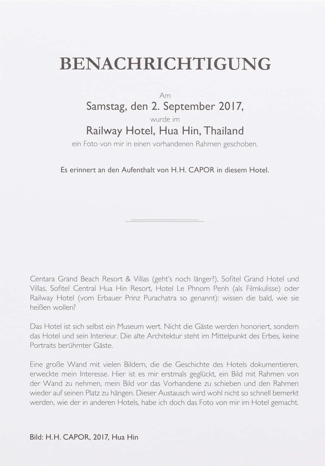 Hermann H. Capor, post card series "Benachrichtigung", 2017