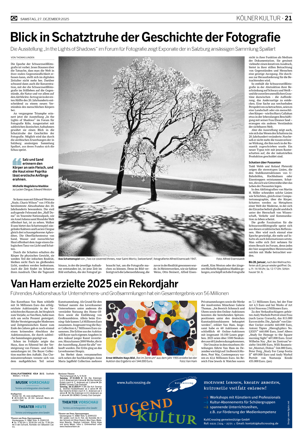 "Anyone who wants to see a magnificent exhibition of photographic images that claim nothing more than to be images of the highest quality should visit the Forum der Fotografie in Cologne. For years, Dr. Norbert Moos has been presenting extraordinary exhibitions at this institution, focusing solely on photography as an aesthetic achievement. Currently, this includes the wonderful show entitled “In the Lights of Shadows.”